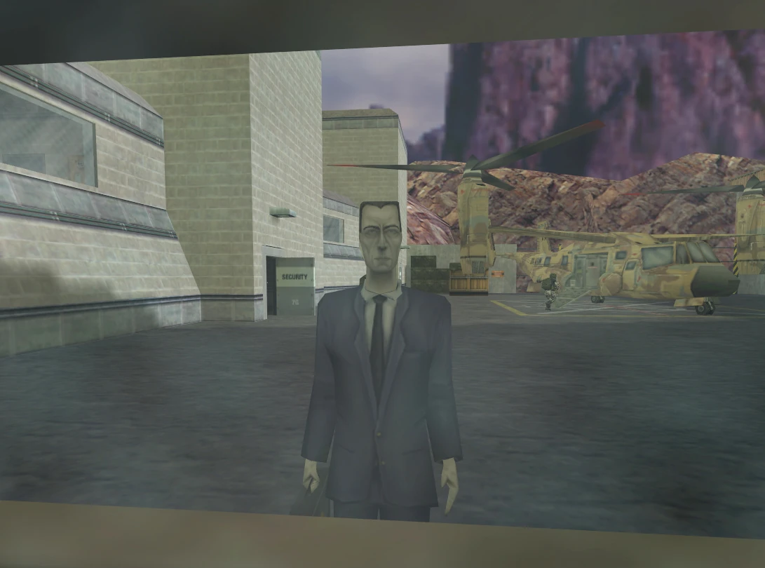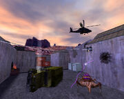 Shortly after this, in response to the HECU's now failing cleanup operation, the US government deploys a Black Ops strike team into Black Mesa to plant and detonate a Mark IV Thermonuclear Device to obliterate the entire facility, intending to end the conflict once and for all, with orders to kill anything, human or otherwise, that stand in their way.[25] After the Black Ops' arrival, two Vortigaunts, R-4913 and X-8973, are successful in retrieving several stolen Xen crystals.[26] After Freeman journeys through the abandoned areas of Sector E, killing an Ichthyosaur, and coming into contact with members of the Black Ops, he is ambushed and knocked unconscious by two HECU marines. Instead of taking him for interrogation as ordered, however, they strip him of his weapons and dump him into a trash compactor. Meanwhile, Calhoun narrowly escapes through the portal with Rosenberg and his two colleagues, Walter Bennet and Simmons, just as the HECU soldiers storm the underground facility. While the doctors successfully reach the safe area outside of the Black Mesa, Calhoun is caught in a temporal harmonic reflux, traveling between Xen and the facility, where he witnesses Gordon being carried off by the HECU soldiers to the trash compactor. However, he soon ends up together with the scientists and the four escape in an SUV.[27] Then Gordon narrowly escapes death and manages to work his way through Black Mesa's Biological Waste Processing Plant.[28] Upon exiting the plant, and restocking on some weapons, Freeman finds himself in Black Mesa's top-secret Advanced Biological Research Lab, where Xen creatures have been contained for study and examination, long before the incident even took place. Within, the HECU have established a considerable presence, but are clashing with hoards of escaped and teleported Xen hostiles. Freeman fights his way through the carnage, obtaining an experimental Tau Cannon in the process, and escorts a hiding scientist to open the main doors for him.[29] Freeman exits the lab and begins his journey across the surface.[14] Meanwhile, Corporal Adrian Shephard awakes in the Black Mesa Medical Lab, after being knocked unconscious following his V-22 Osprey being shot down by Xen aircraft.[30] Shephard makes his way towards the extraction point, where he is told via radio that the military forces are pulling out of the facility.[31]