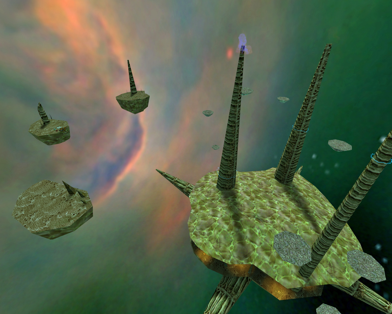 Freeman arrives at Xen after his teleportation at the Lambda Complex, and is almost immediately contacted telepathically by the Nihilanth, the creature holding the portal open, who responds to Freeman's arrival with "comes... another...". Freeman uses his Long Jump Module to traverse the floating islands of Xen, encountering many of the aliens that had been teleported into Black Mesa in their natural habitats, as well as the remains of HEV-wearing researchers that came before him. Freeman arrives at a large central island, and within finds a small portal, which he steps into and is teleported to the Gonarch's lair.[5]