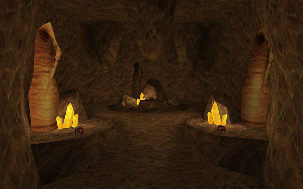 At the very bottom of this pool, between a boulder and three Xen plants, a small crack in the wall of the cave can be seen emitting bubbles of air. After widening this hole, the player can enter a small air pocket in a cave where the title "Chumtoad's Lair" appears on the screen. In the lair, three Chumtoads sit amongst Xen plants and Snark nests, illuminated by Xen crystals. The creatures later vanish when approached. It is unknown whether these water-filled caverns are a typical Chumtoad habitat or merely one type of lair.