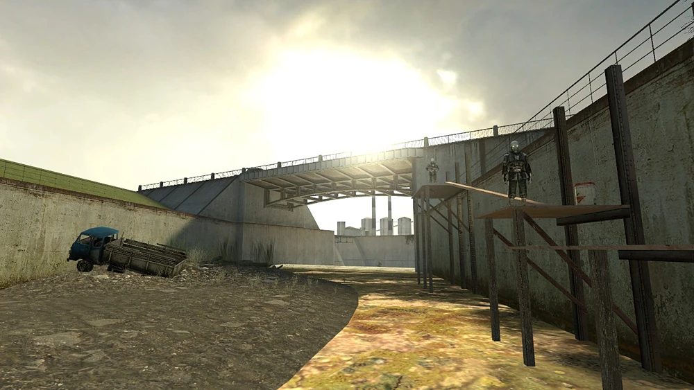 - A Civil Protection headquarters building was originally to be seen near the Manhack Arcade, with above it the sign "C17 MP", or "City 17 Metropolice", in the WC mappack map "