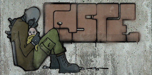 Graffiti sprayed near Black Mesa East and other places (such as Matt's home), with a Combine (or possibly Resistance, or even a recycled Conscript) soldier holding a baby next to the word 'Caste'.