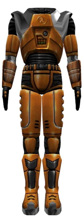 It is predominantly worn by Gordon Freeman during much of the Half-Life series - first as the Mark IV suit in Half-Life, then as the upgraded Mark V suit in Half-Life 2. It allows him to sustain many injuries from damage that would normally fatally wound him, such as projectiles or melee attacks.