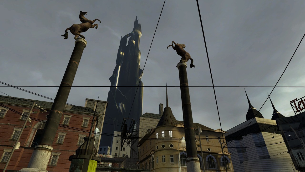- Terminal, whose remnants can still be found today on the Half-Life 2 box art. It was also used in the Half-Life 2 teaser trailer. The column that's mounted by a horse statue, however, made the final cut in the map preceding Gordon's first travel into the Citadel.