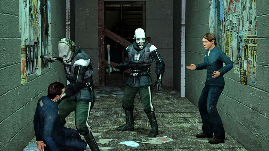 Barney contacts Dr. Isaac Kleiner, Gordon's mentor from his MIT days and former Black Mesa employee. After a bit of discussion, they decide to send Gordon over to Kleiner's Lab. Along the way, Gordon finds himself in the middle of a Civil Protection raid on a tenement house; after being captured, Gordon is rescued by a young woman named Alyx Vance.