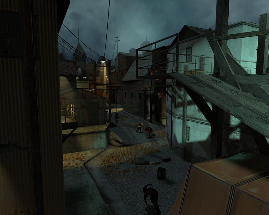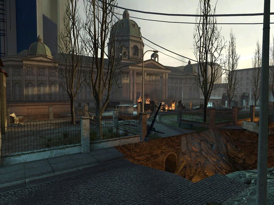 Arriving to the Black Mesa East late in the evening Gordon meets Dr. Judith Mossman for the first time, and is reunited with Resistance Leader and former Black Mesa Scientist Eli Vance and Alyx. Gordon is also introduced to the Zero Point Energy Field Manipulator, also known as the 'Gravity Gun', a physics manipulator that quickly becomes indispensable, and after that, Gordon meets Dog, Alyx's robotic "pet." Like A Red Letter Day, this chapter is full of insight and dialogue about the current state of the world, the people in it, and the aftermath of the Black Mesa Incident. While Gordon is playing with Dog in the scrapyard, Alyx spots Combine Scanners sweeping the area, shortly before an all out aerial raid on Black Mesa East. While attempting to rejoin the others, Gordon and Dog are separated from Alyx by a collapsed ceiling, and Gordon is forced to escape down a tunnel to Ravenholm, a place that Alyx didn't want to talk about earlier, showing obvious discomfort at the thought.