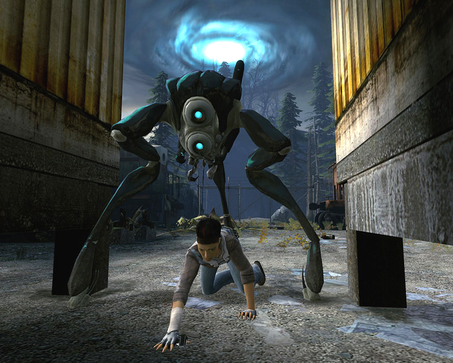 Freeman encounters Hunters in combat for the first time in the forested open spaces outside of City 17. Hunters are first met when one manages to pounce upon Alyx Vance and successfully impale her in the back. Later they are encountered scouting or patrolling areas, as well as being part of various Combine forces attempting to intercept Alyx Vance and Gordon Freeman on their way to White Forest.
