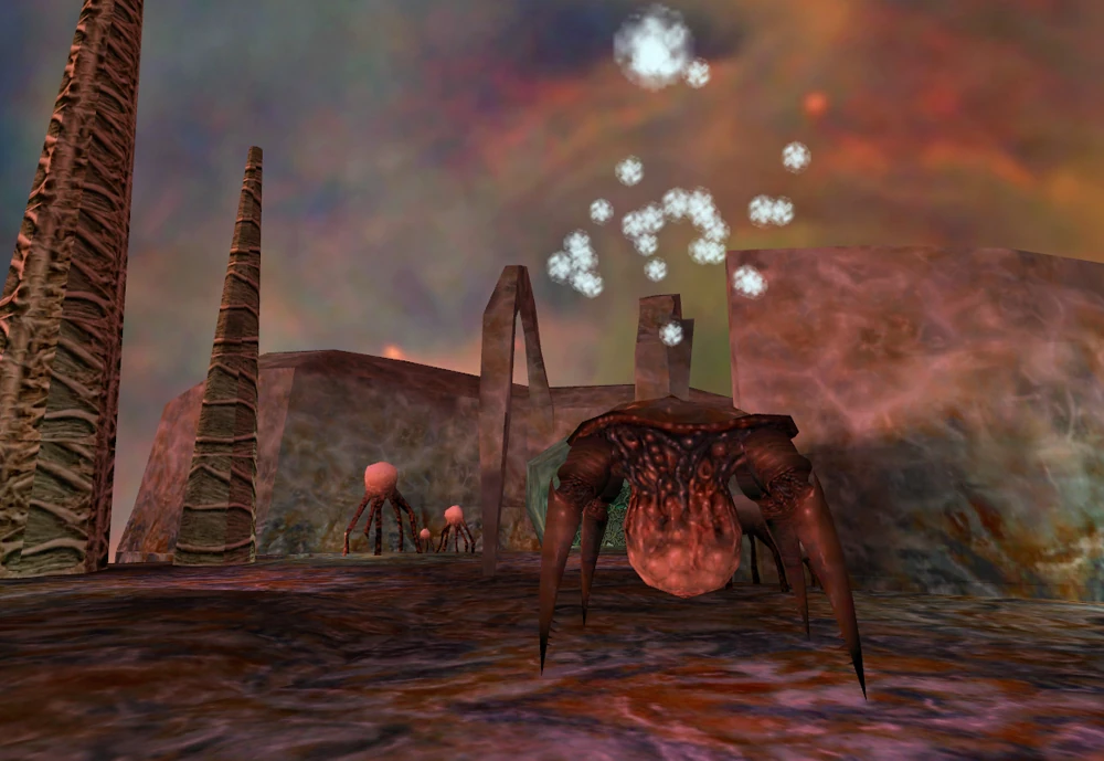 The military castes live in an industrialized, floral Xen Base. The Nihilanth has its own personal chamber which is heavily defended by Vortigaunts and Alien Controllers.